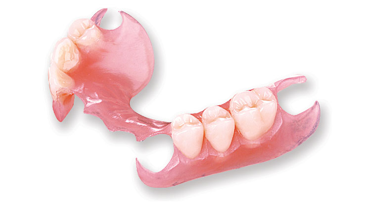 Partial denture - is a denture for a partially edentulous patient who desires to have replacement teeth for functional or aesthetic reasons and who cannot have a bridge (a fixed partial denture) for any reason, such as a lack of required teeth to serve as support for a bridge (i.e. distal abutments) or financial limitations.